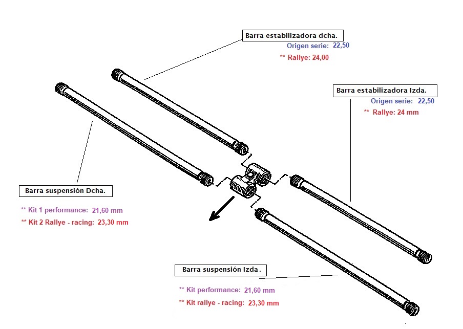 - Set – pareja de barras estabilizadoras Kit Rallye: 24 mm: