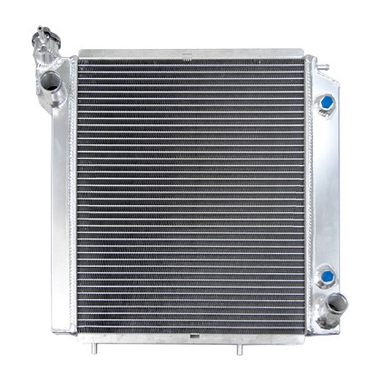 Cumple normativa FIA de ficha de homologación de Gr. A . Fabricación CEE en aluminio grado aeronáutico de máxima calidad y soldaduras TIG garantizadas. Mucho más resistente y eficaz que los originales de la época, para calentar el sistema con rapidez y evacuación del calor más rápida con un ratio térmico entre un 12 y un 18% mas que los convencionales – mantenimiento de la temperatura estable en márgenes de máxima fiabilidad en uso intensivo. Mayor resistencia mecánica al esfuerzo.