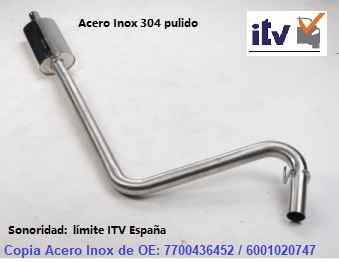 Fabricado en acero al carbono y recubierto de aluminio/silicio. Respetando anclajes y conexiones. Sonoridad original. Boca de salida tipo serie con valona redonda. Válido para ITV. Ruido de serie. (1ª calidad de producto CEE)