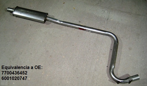 Nota: Este tramo corresponde en modelo de fabricación a la variante de Fase 2, para realizar el montaje del mismo a la versión Fase 1 es necesario modificar el sistema de anclaje de gomas – elásticos a la carrocería, que es la variación sobre el anclaje que tienen entre sí las dos versiones, (modificando la varilla que trae soldado el tramo de escape para hacer la variación de sistema) las bocas de conexión son iguales en medida. La botella silenciadora de la versión fase 1 es descentrada, pero no tiene importancia en la adaptación.