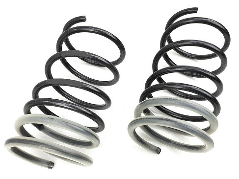 Muelles para columnas de suspensión delantera – tipo – TUNING / SPORT – mas cortos, para descenso de altura de caja aprox. 30 mm. – Configuración de dureza muelle específica.