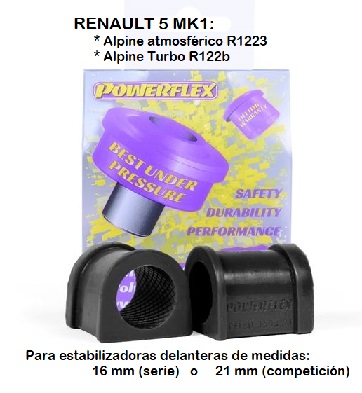 *** Válidos para versiones RENAULT 5 MK1: Renault 5 TS – TX – Copa/Alpine atmosférico R1223 y Alpine/copa Turbo R122b.