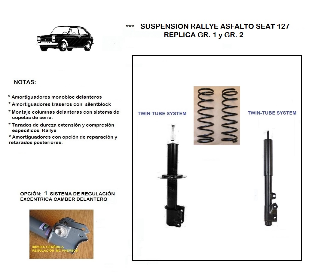 *** PRECIO Juego de 4 amortiguadores tipo monobloc Rallye – (2 delanteros y 2 traseros) + Juego muelles suspensión delanteros …. DESDE: 1.750,00.- € – IVA NO Incluido.